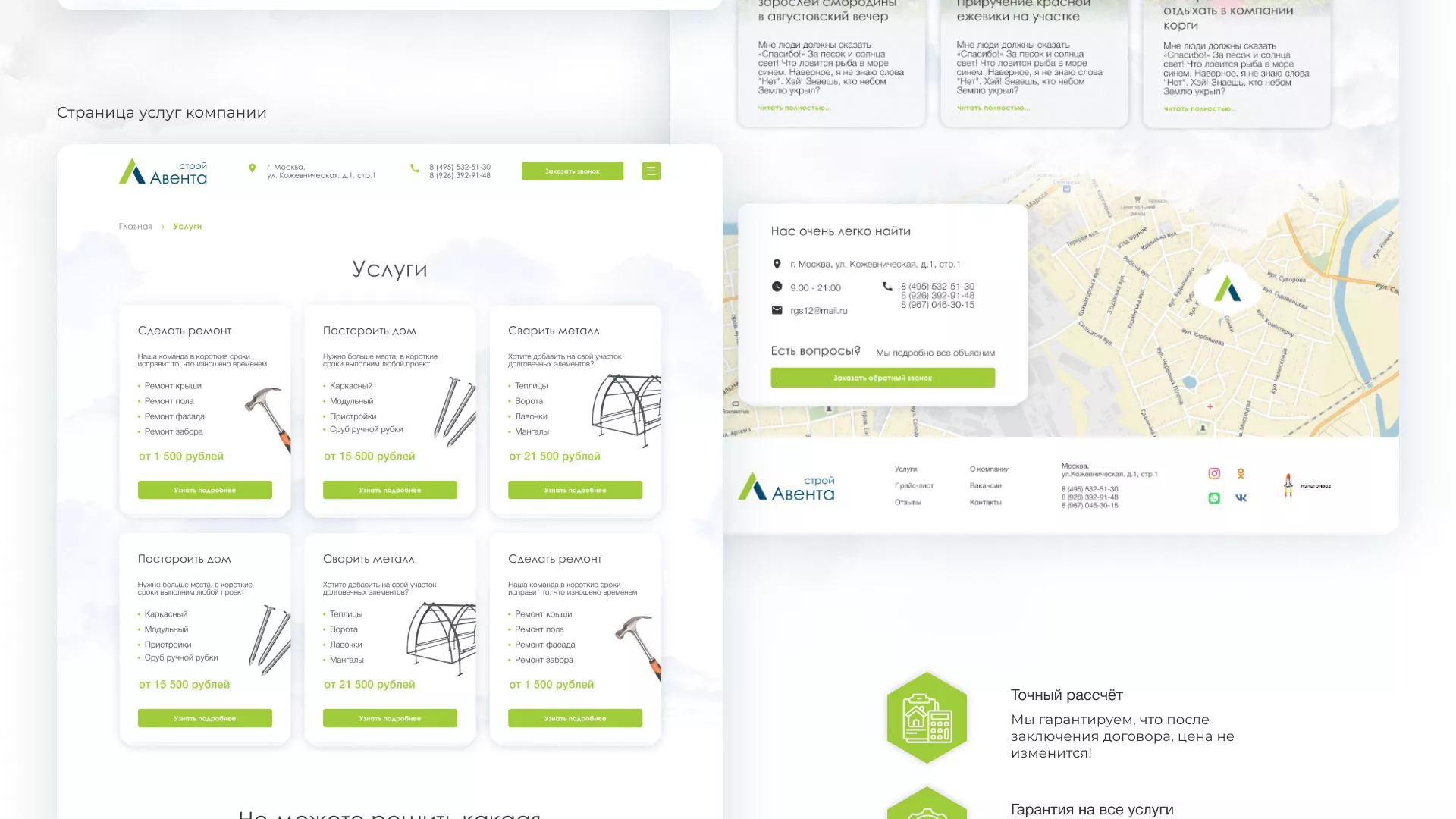 Сайт-визитка клиента должен стать сайтом-каталогом. Поэтому, мы решили продолжить легкую тему облаков с главного экрана и сделать в этом стиле весь сайт, используя корпоративные цвета компании. Здесь сразу 3 существенных плюса: